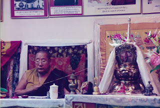 薩迦達欽仁波切向根造上師舍利塔獻哈達 1998