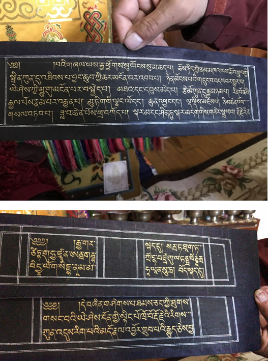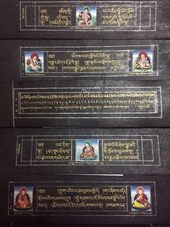 - 特别是甚深内续三密,无缘共享之甚深密法,乌金莲花生大士等印度和西藏的大成就者们从非人空行秘藏处等殊胜圣地迎请过的密法旧译经、伏藏经、意净经等三传承及具九传承之殊胜典籍。
