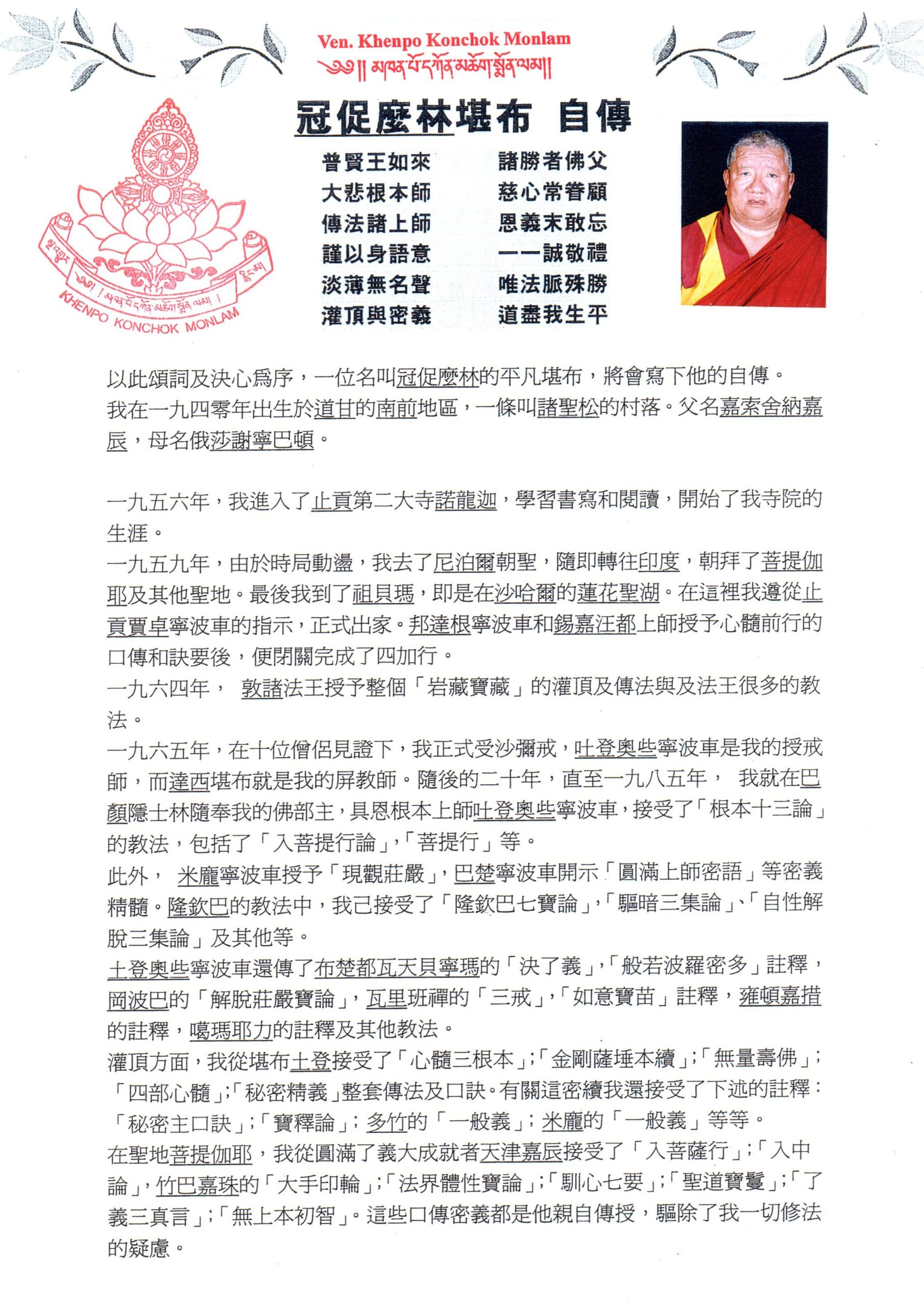 以此頌詞及決心爲序,一位名叫冠促麼林的平凡堪布,將會寫下他的自傳。